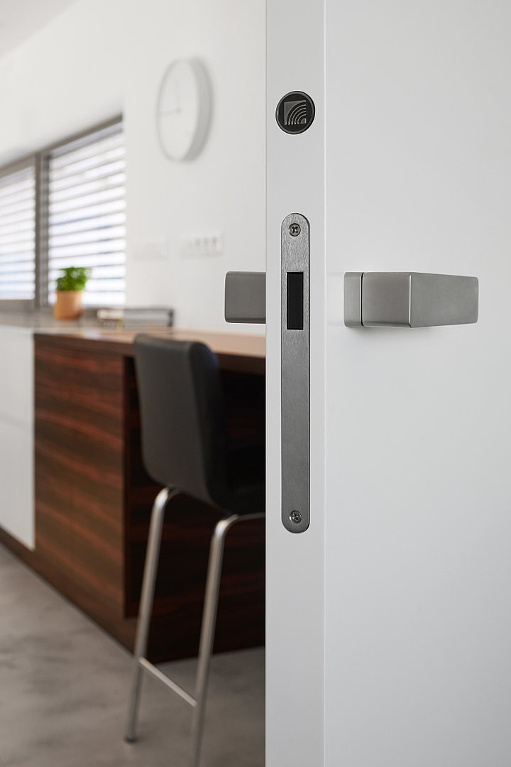 Menšia pracovňa vznikla nadväznosťou na oslnivo bielu lakovanú kuchynskú zostavu.