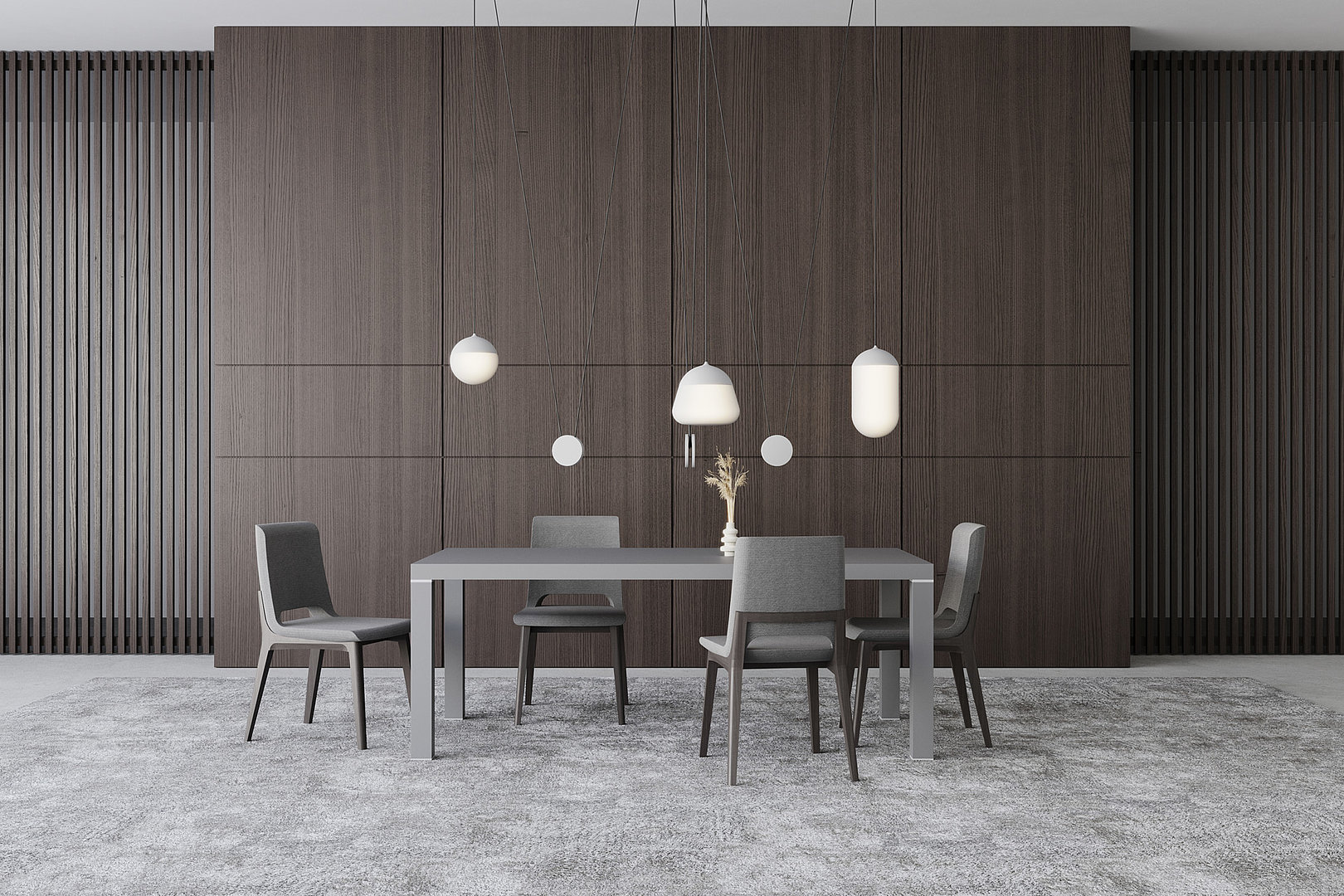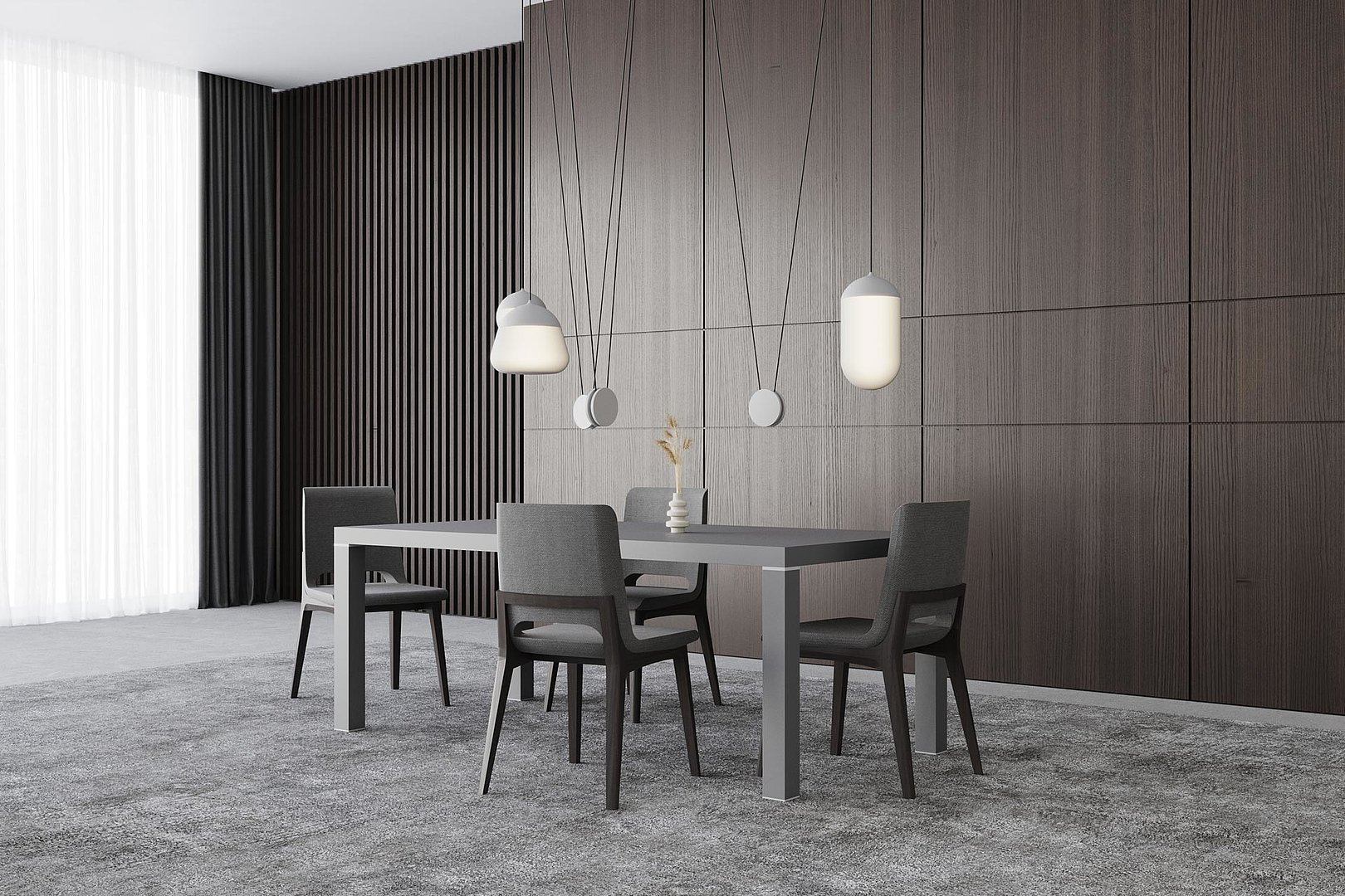 Elegantný vzhľad jedálenského stola vytvára stolová doska a decentný kovový prvok, ktorý od nej oddeľuje a súčasne zakončuje každú jeho nohu.