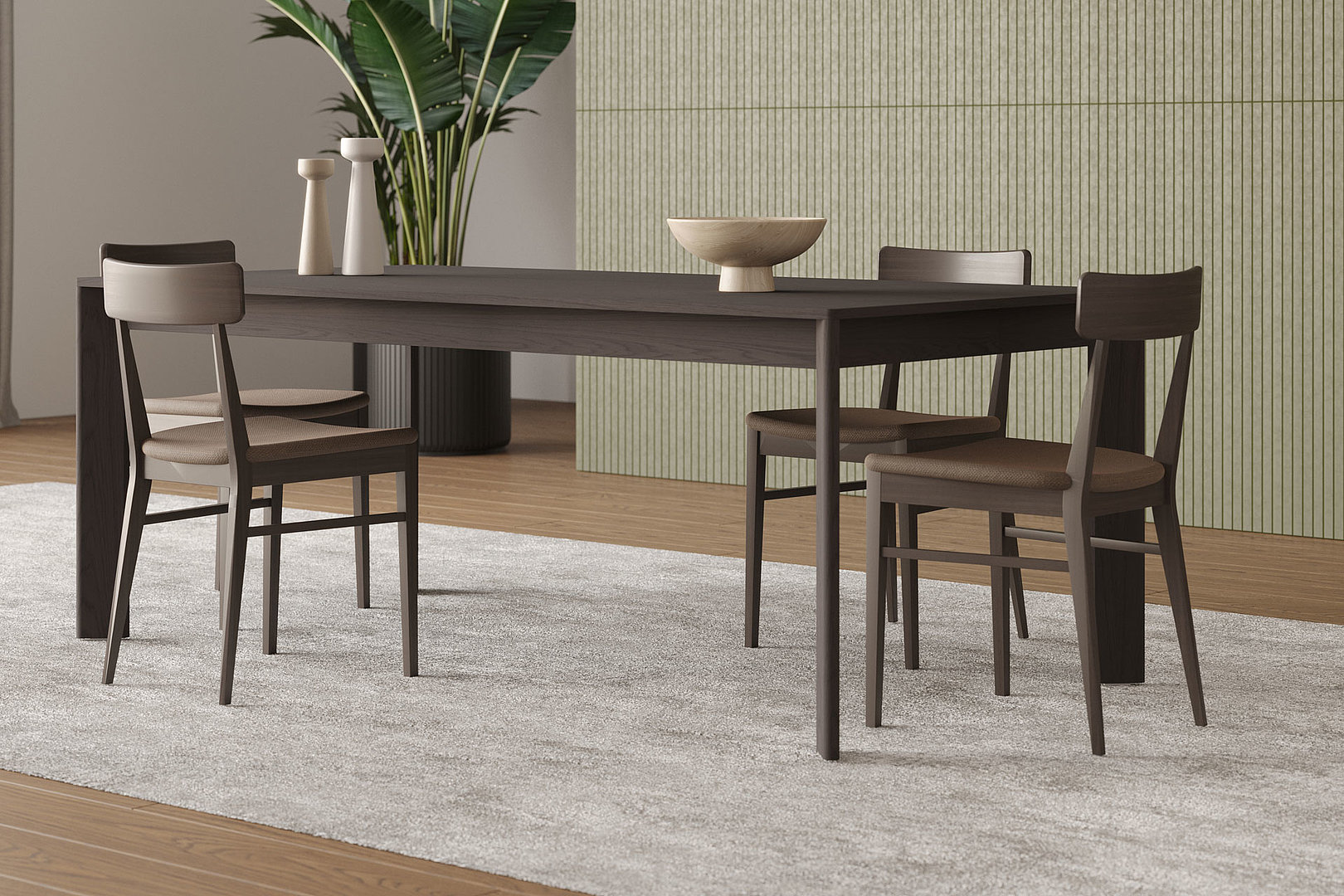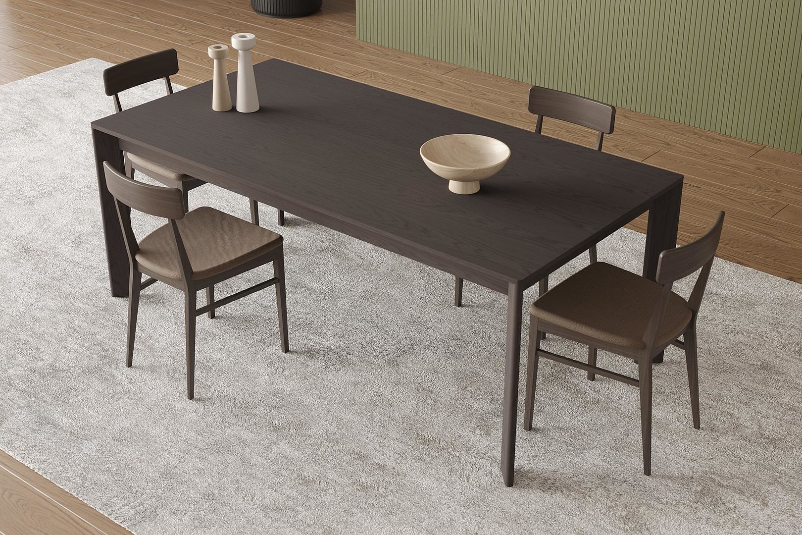 Jedálenský stôl vhodný do každého interiéru. Nohy stola so zaoblením dokonale nadväzujú na stolovú dosku a ich skosenie navyše umožňuje, aby vynikla kresba prírodných dýh.