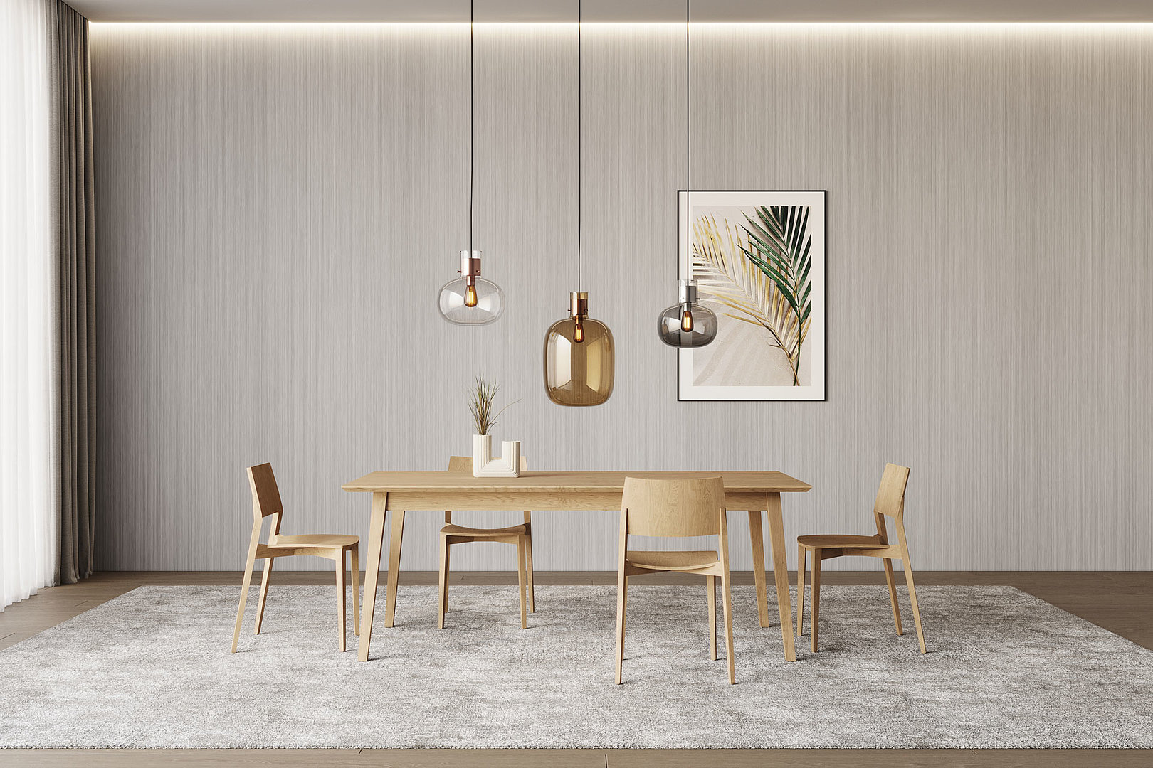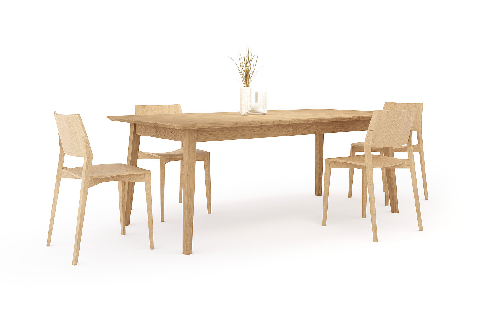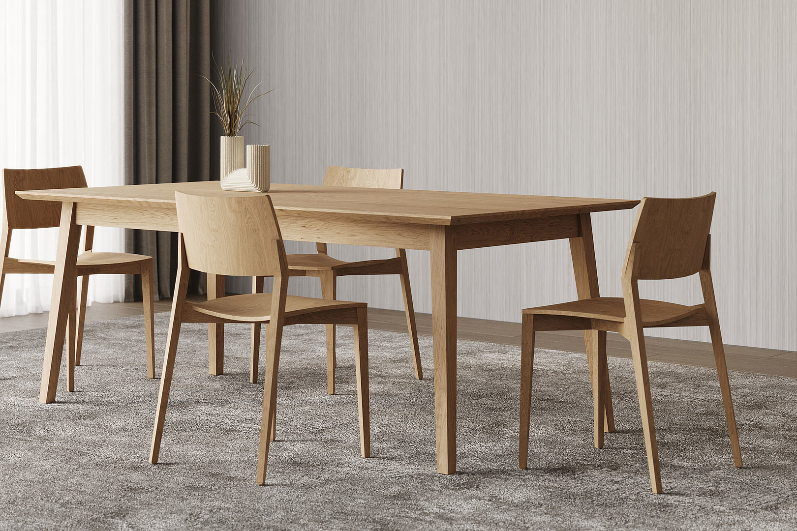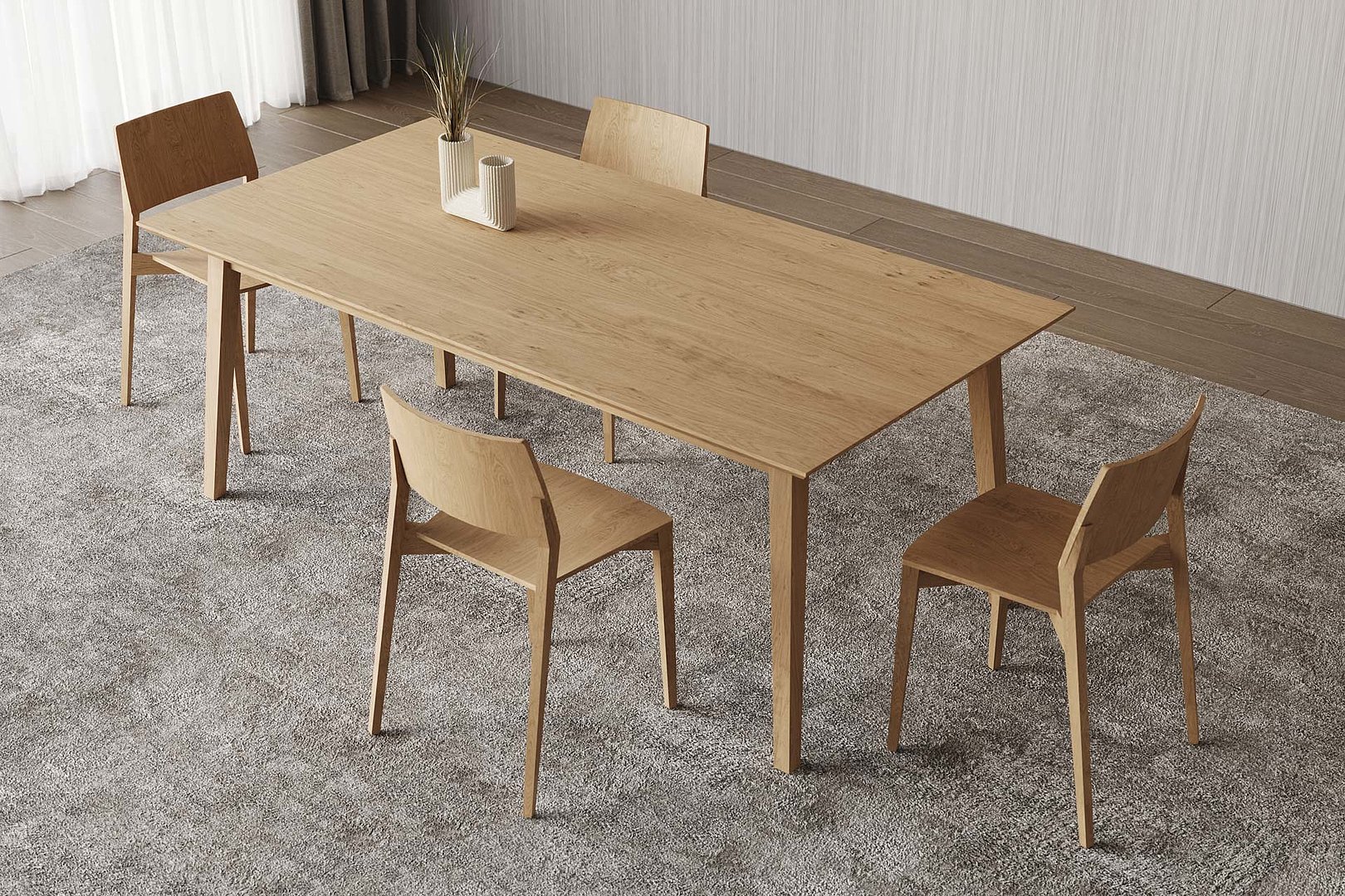 Jídelní stůl s rozkladem, který dává ještě více vyniknout kvalitě přírodních dýh. Jeho nadčasovost spočívá zejména v přesnosti a citlivém zpracování.