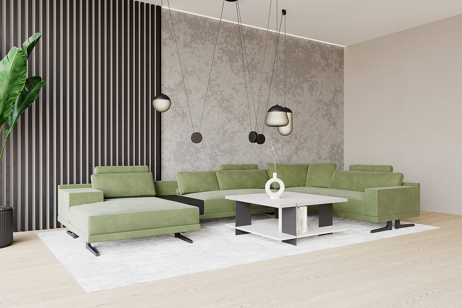 Dizajnový konferenčný stolík v kombinácii prírodnej dyhy alebo lakovaného povrchu s kovovými prvkami. Kovové časti sú zakomponované do oboch dosiek a súčasne tvoria jeho celú konštrukciu.