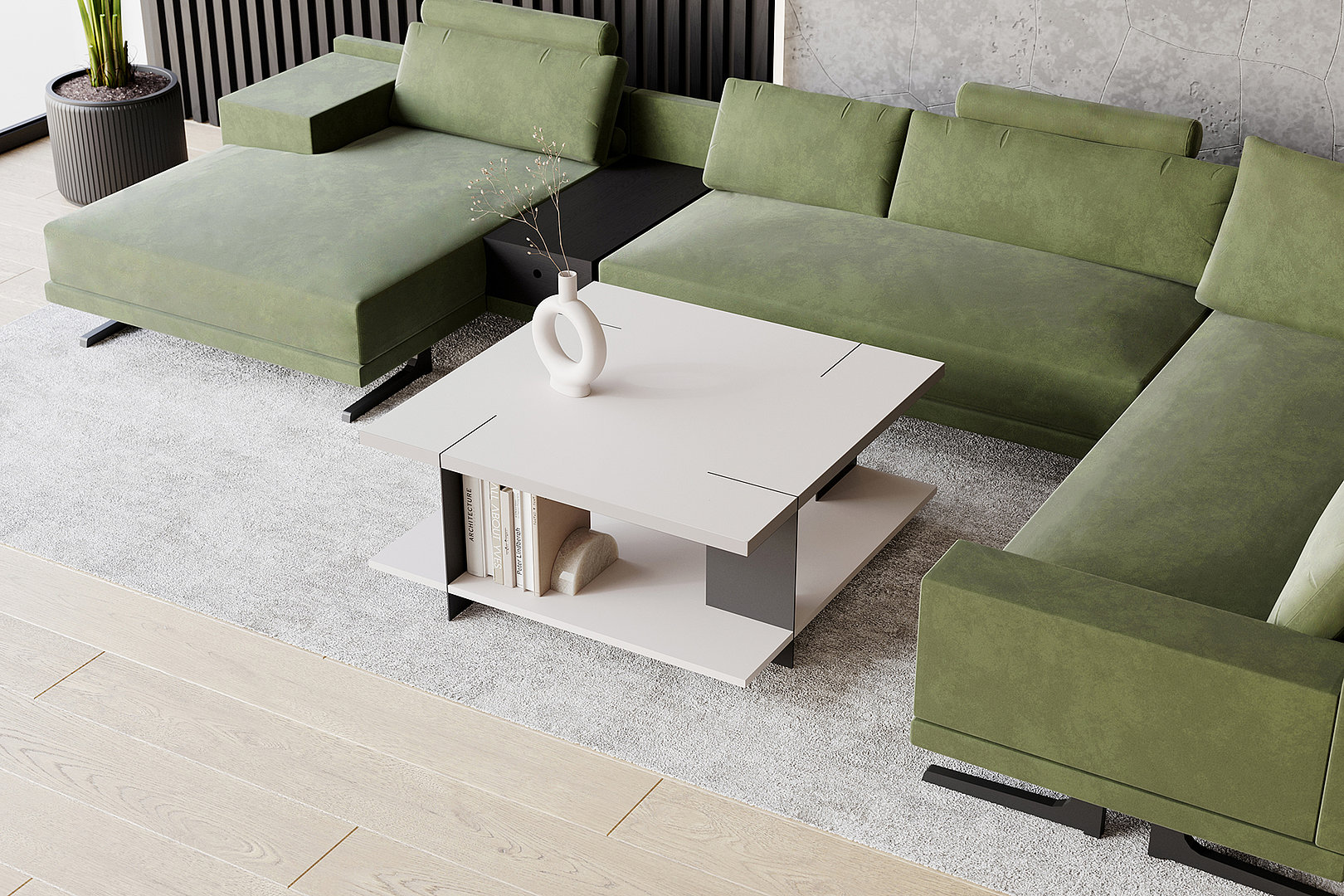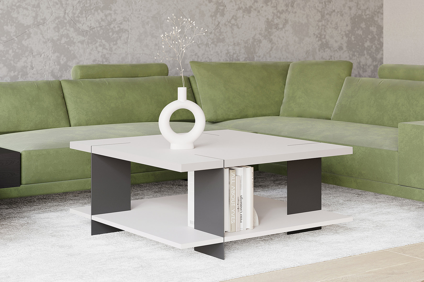 stolíka ponúka úložné miesto na dekoračné predmety alebo knihy.