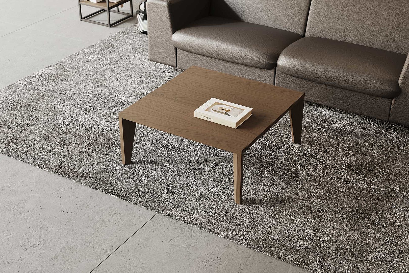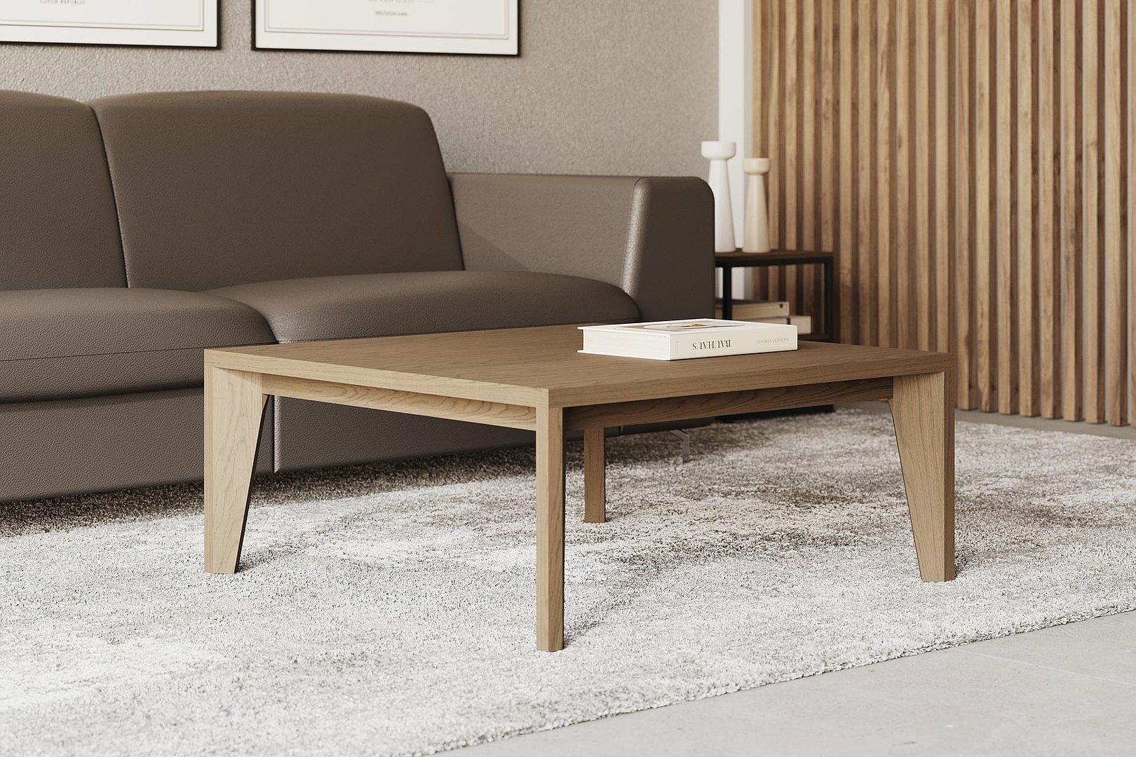 Elegantný konferenčný stolík charakteristický tvarovým skosením nôh a hrubšou stolovou doskou je ideálnou voľbou do moderných interiérov.