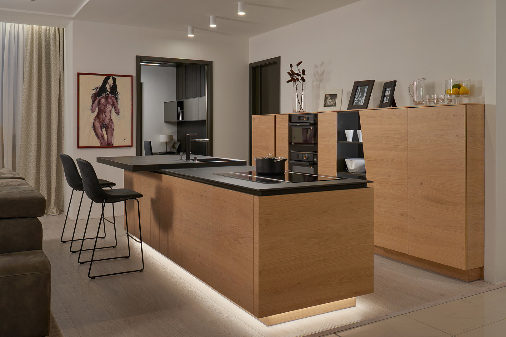 Elegantná zostava ELITE z čisto prírodnej dyhy, ku ktorej si môžete vybrať dizajnovú skrytú úchytku v aktuálnej ponuke variantov tak, aby všetko ladilo do posledného detailu.