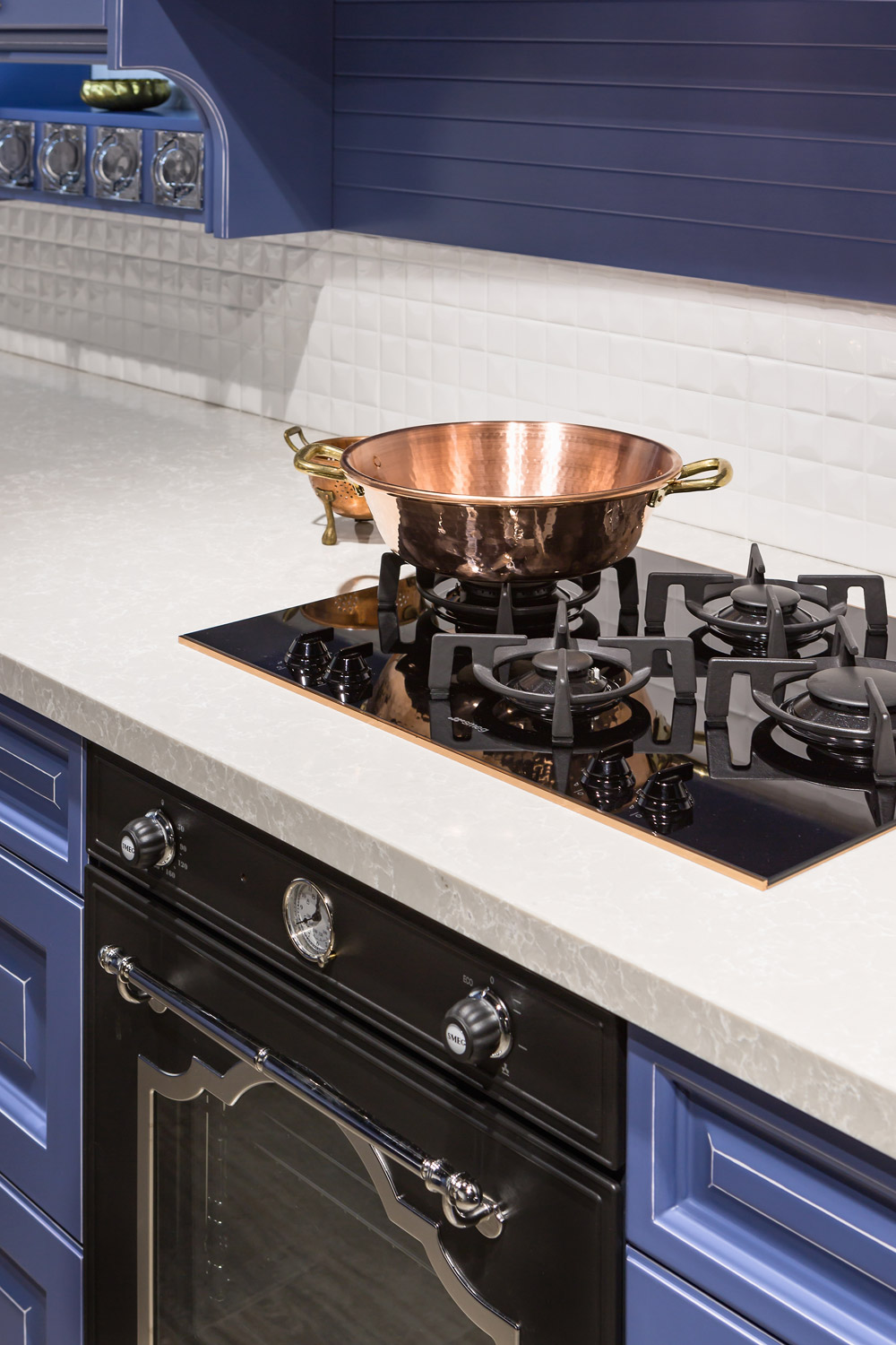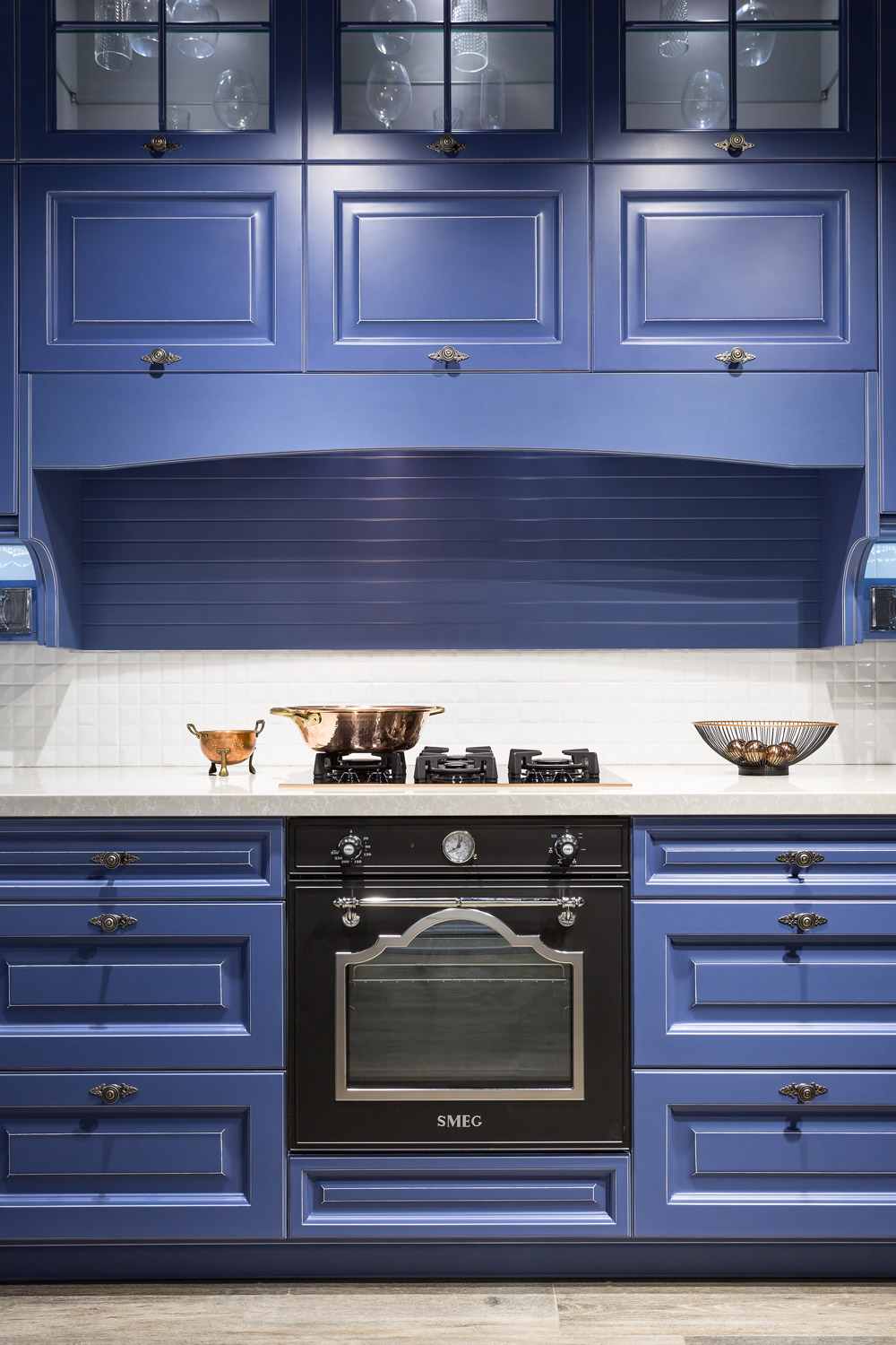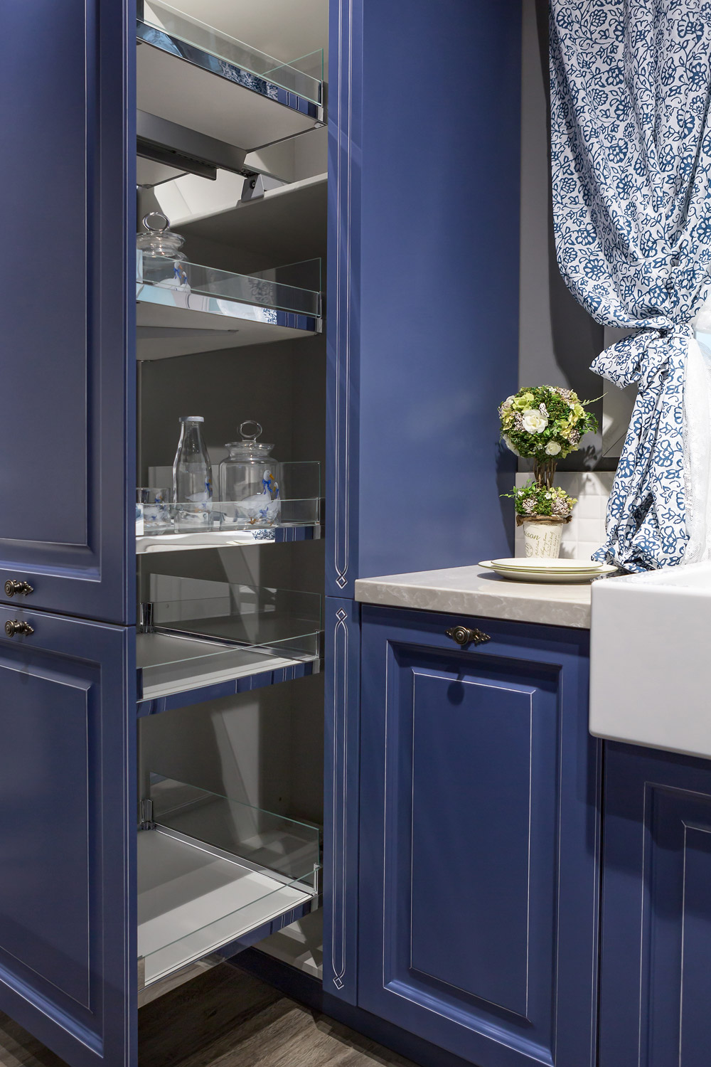 umožňuje, aby vyniklo jej remeselné spracovanie. Ozdobný rámček podčiarkuje modrá farba s patinou.