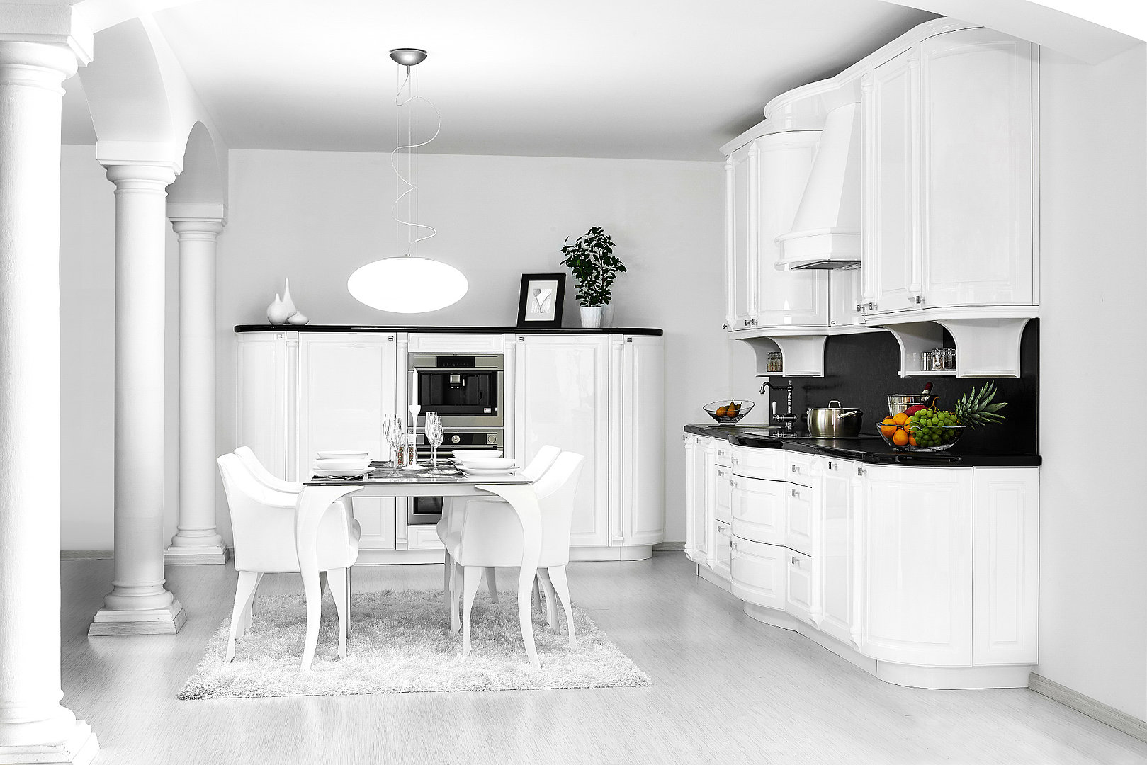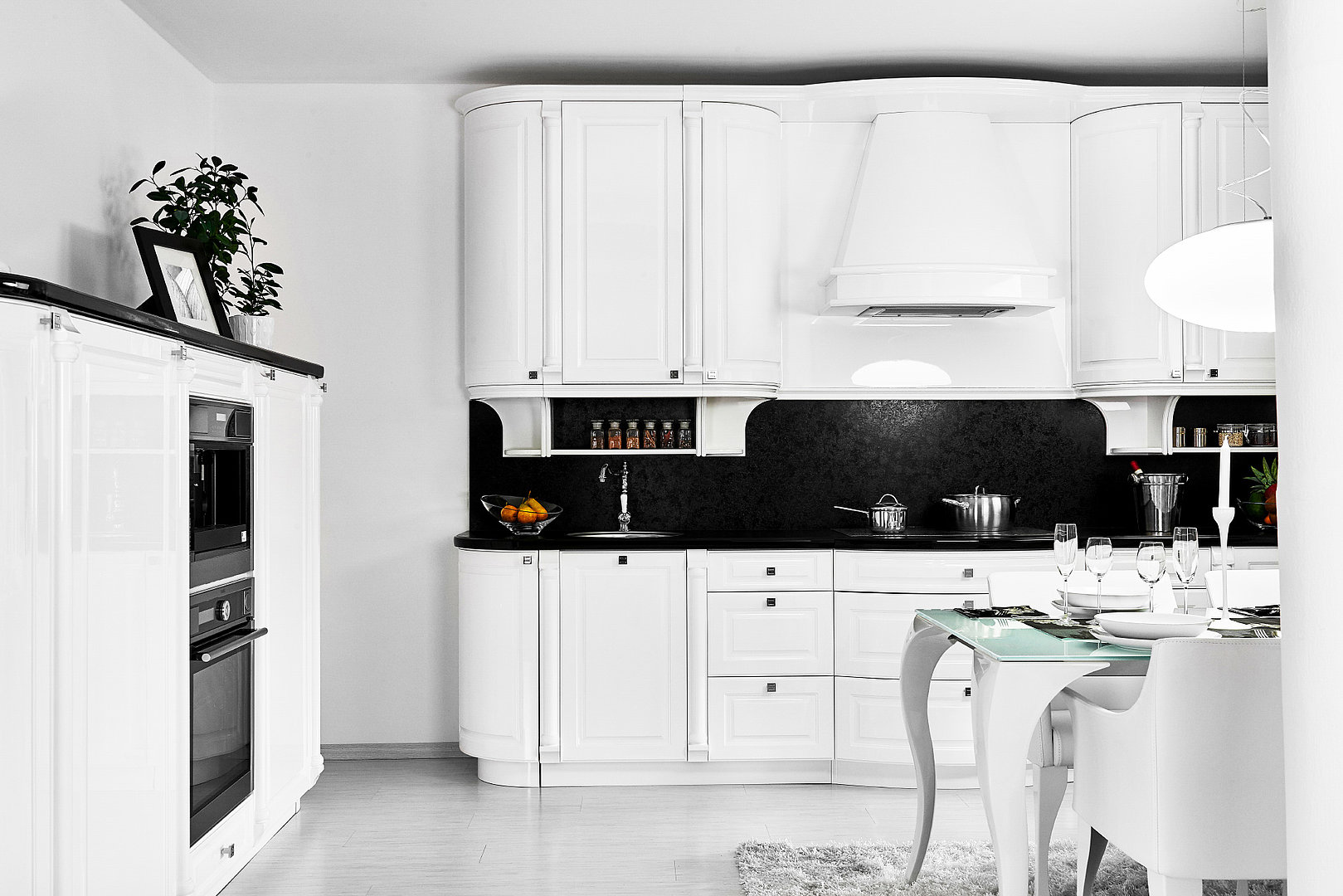 sú tou najdokonalejšou povrchovou úpravou. Ponúkame ich v bohatej škále farieb. Želáte si túto kuchyňu v extravagantnej farbe? Vyrobíme ju. Všimnite si aj decentné úchytky alebo efektné podvesné poličky.