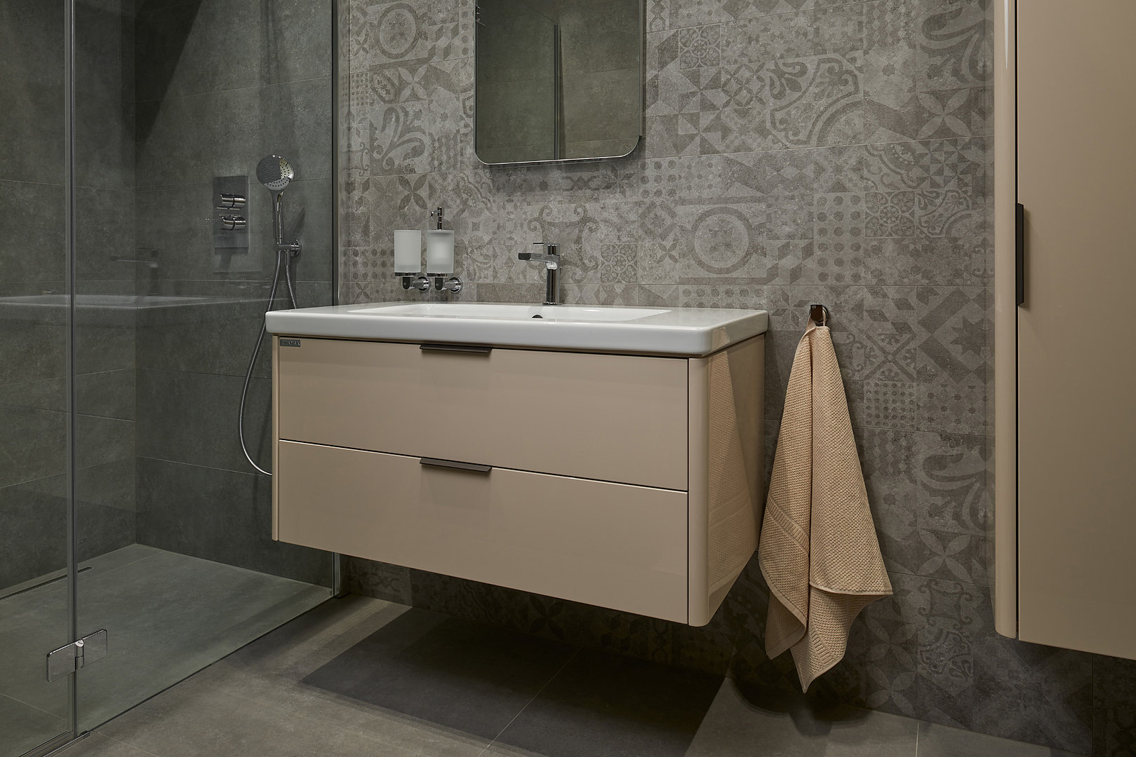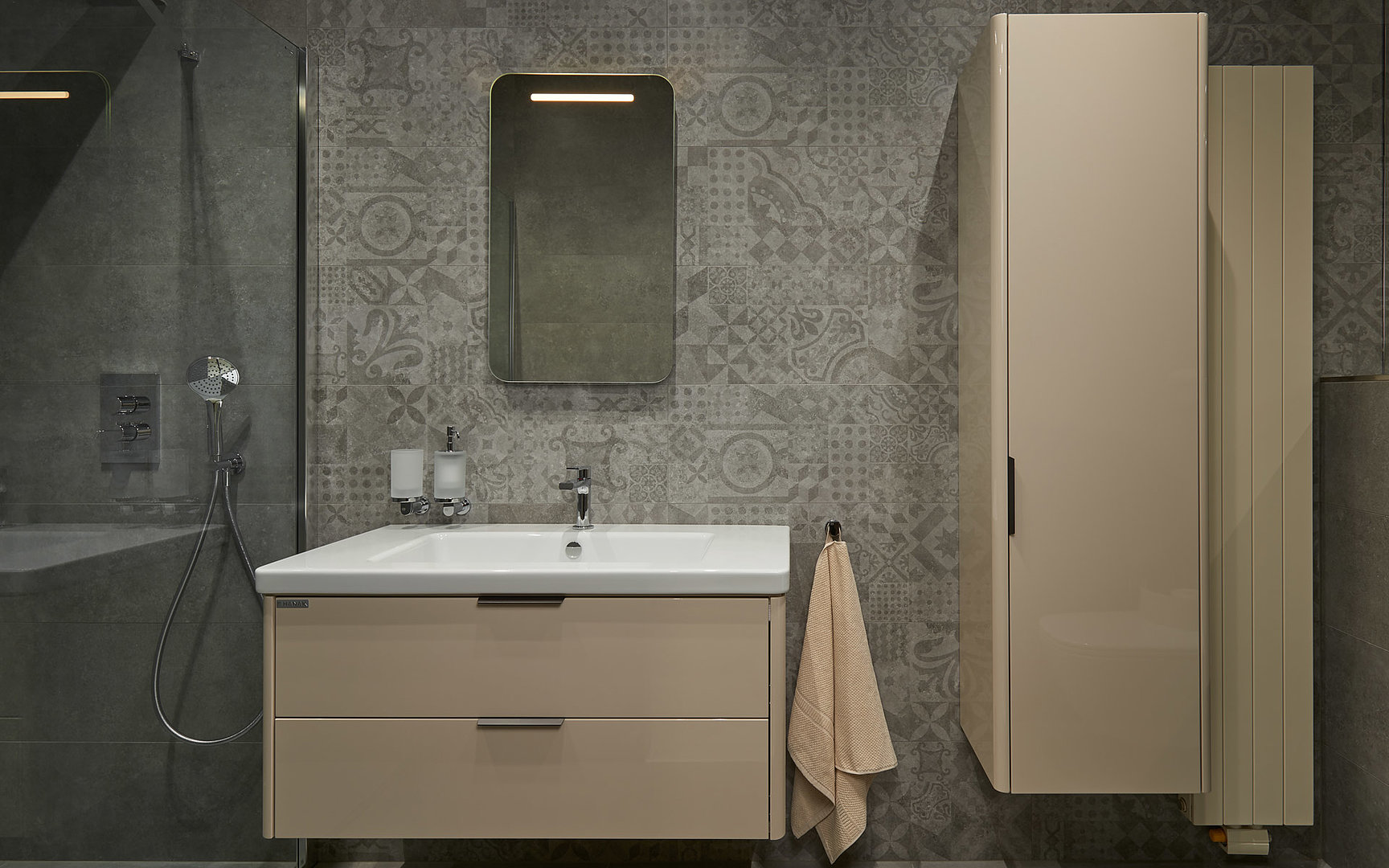Kúpeľňová zostava s pomerne nadčasovým dizajnom. Rovné línie strieda jemná guľatina na korpuse. V ponuke ako dva varianty: s nenápadnou úchytkou a v bezúchytkovom vyhotovení.