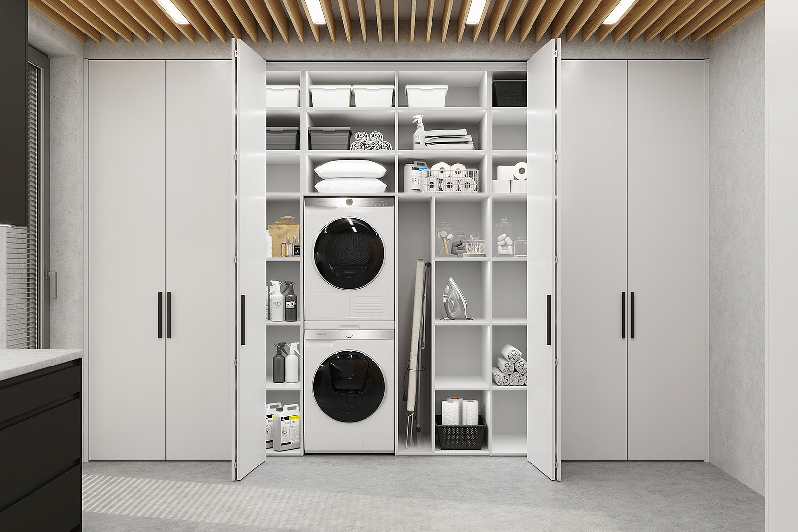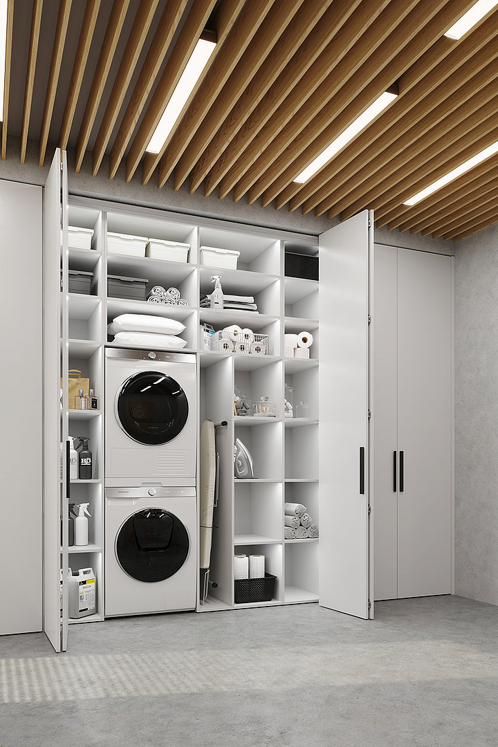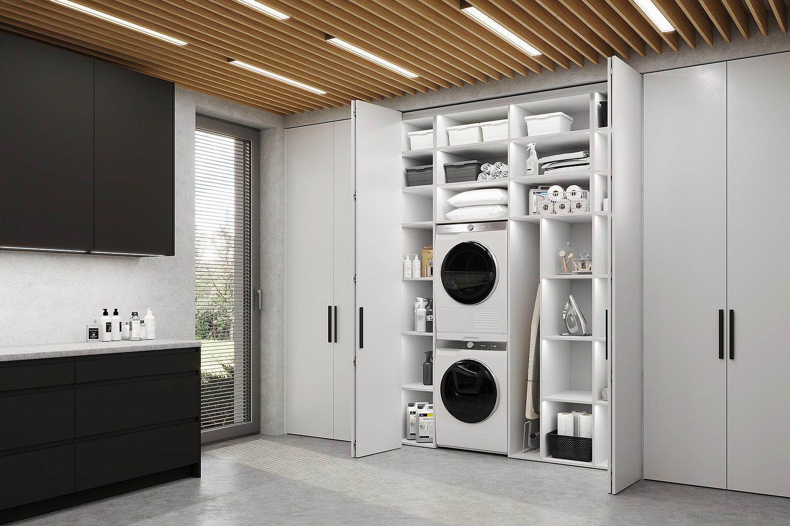 Udržujte si poriadok vo veciach vďaka inovatívnemu riešeniu špeciálnych dverí LINE so skladacím systémom otvárania.