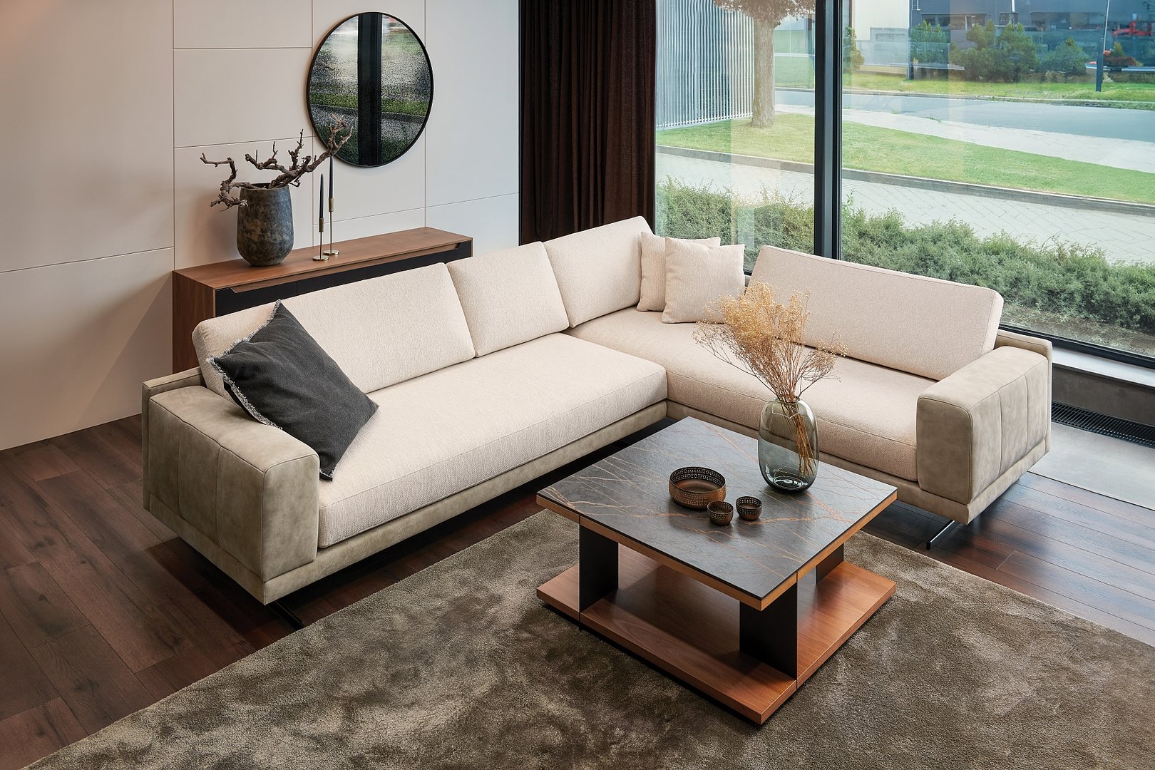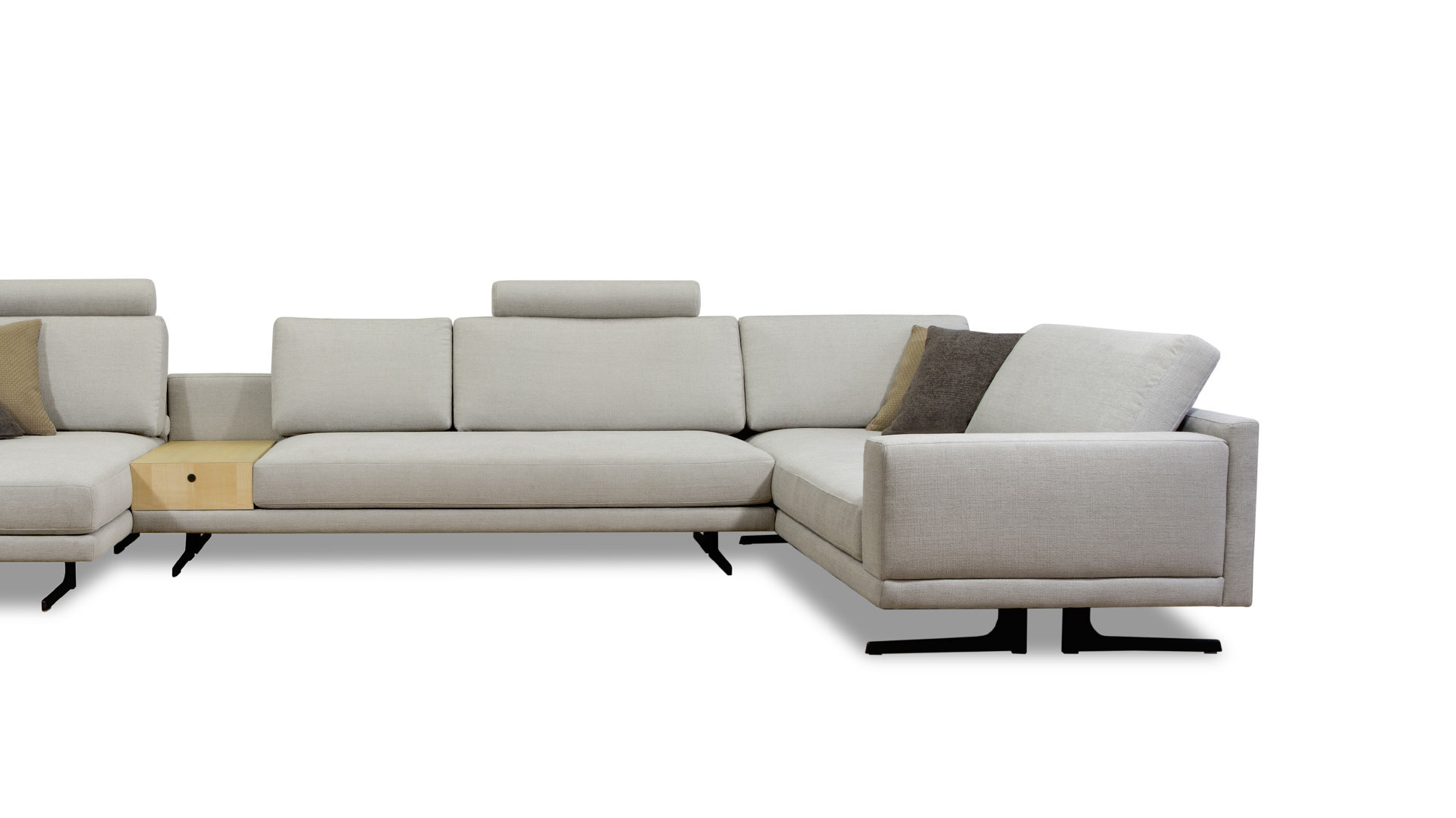 Vďaka širokej škále modulárnych dielov si môžete sedacie súpravy LAND zostaviť podľa svojich možností a požiadaviek. V ponuke je veľké množstvo poťahových materiálov a celý vzhľad môžete dotvoriť výberom jedného z troch povrchov na lamelovom podstavci, ktorý je špecifický pre túto pohovku.