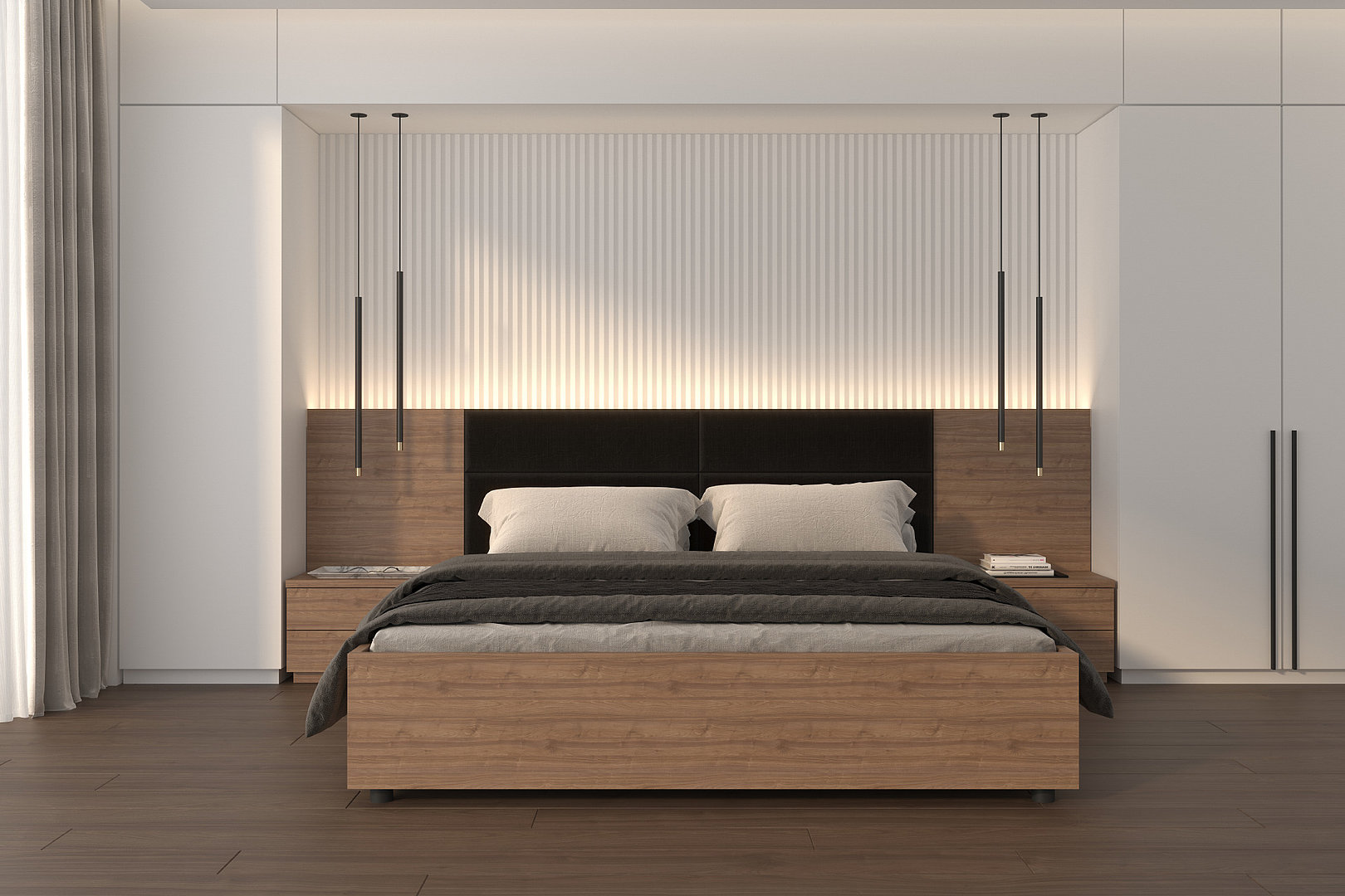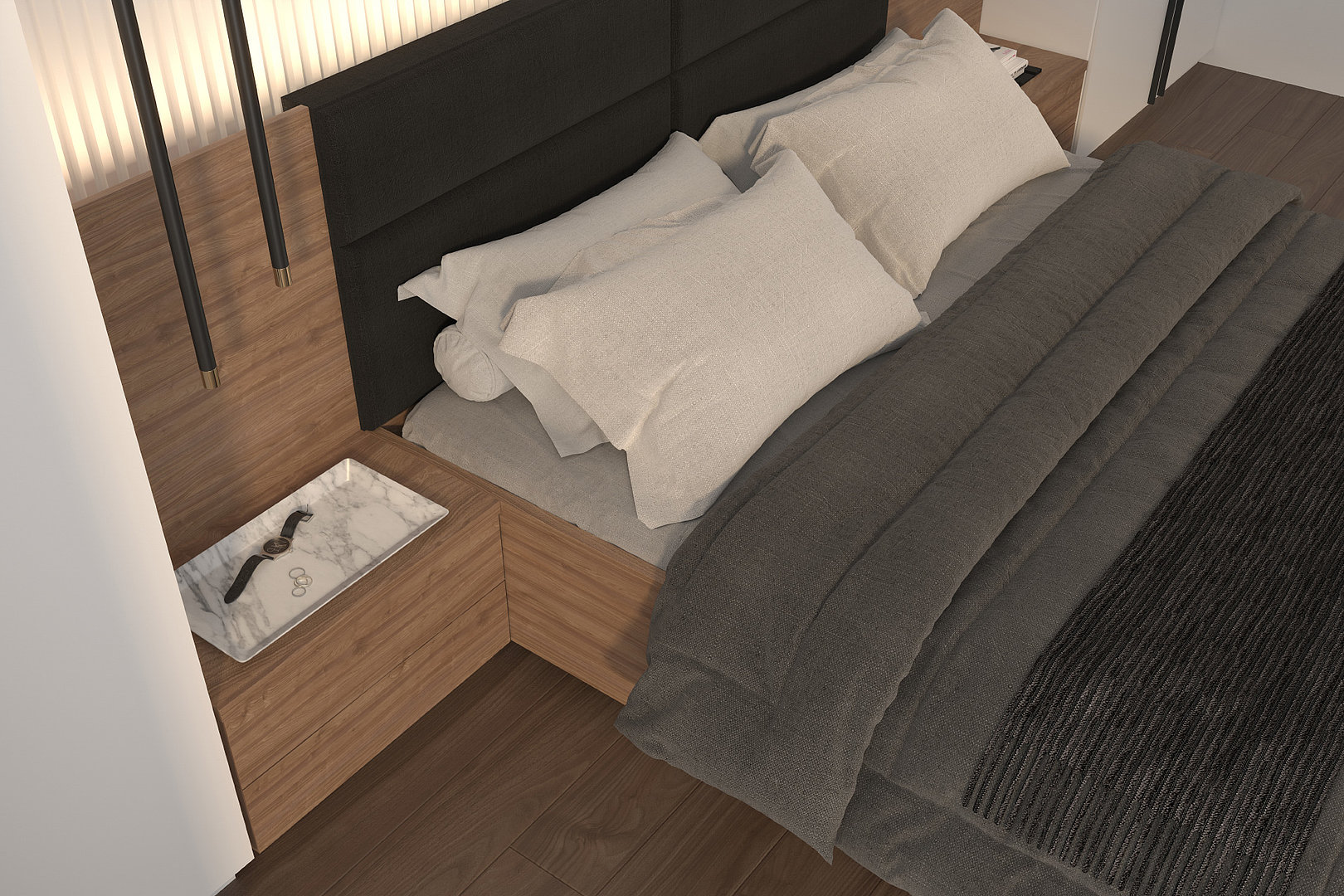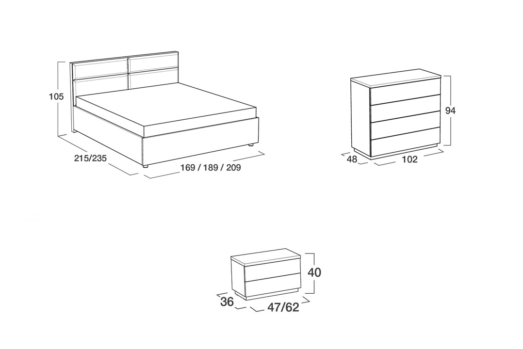 zásuvkových nočných stolíkov kopíruje čistý a elegantný štýl celej postele.