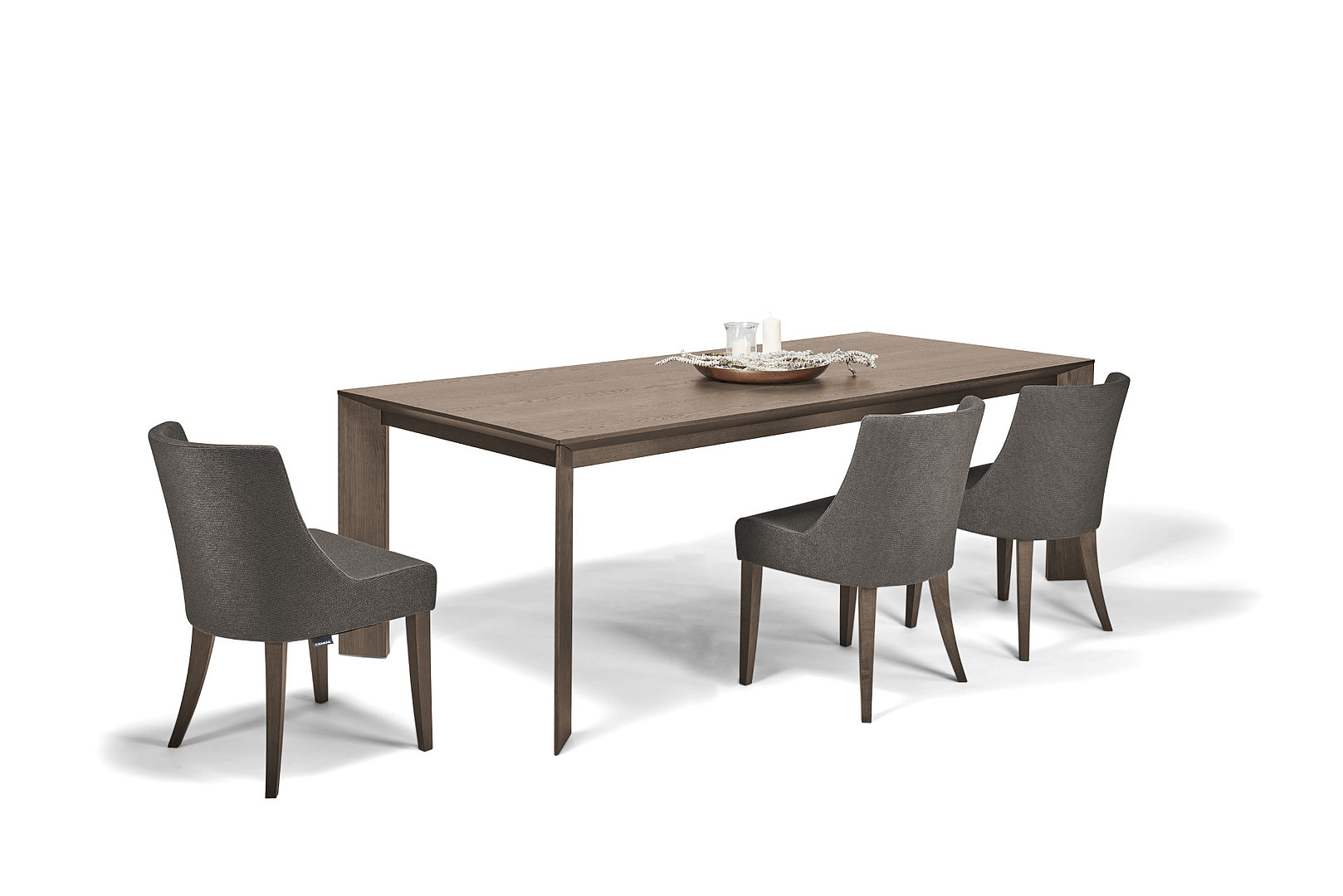 Čalúnnické materiály ponúkajú širokú škálu vysokokvalitných látok a koží od popredných európskych dodávateľov a sú k dispozícii v mnohých farebných variantoch podľa aktuálnych vzorkovníkov. Farbenie drevených podnoží zodpovedá našim jedálenským stolom.