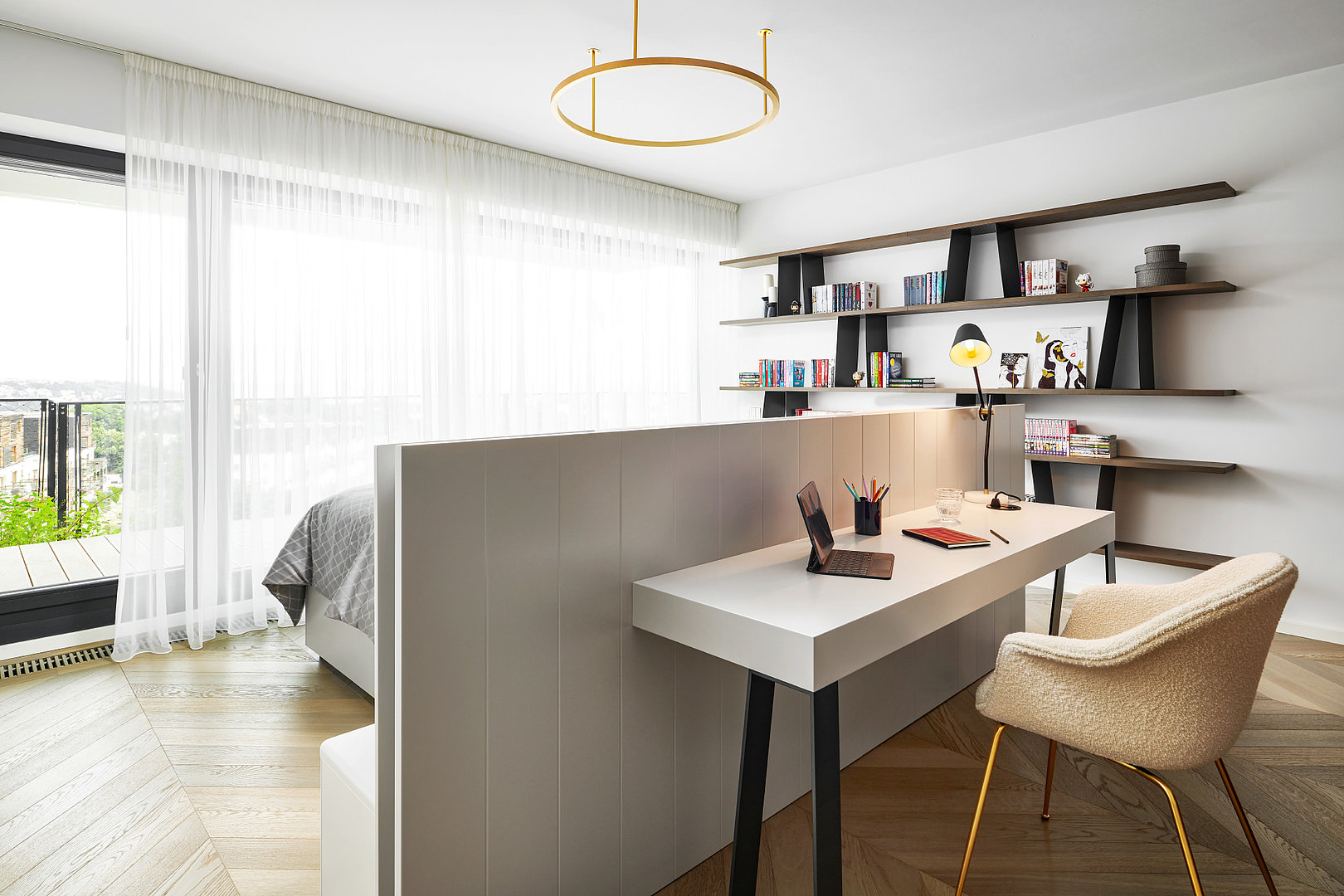sa opakuje v spálni aj kuchyni a krásne prepája celý interiér.