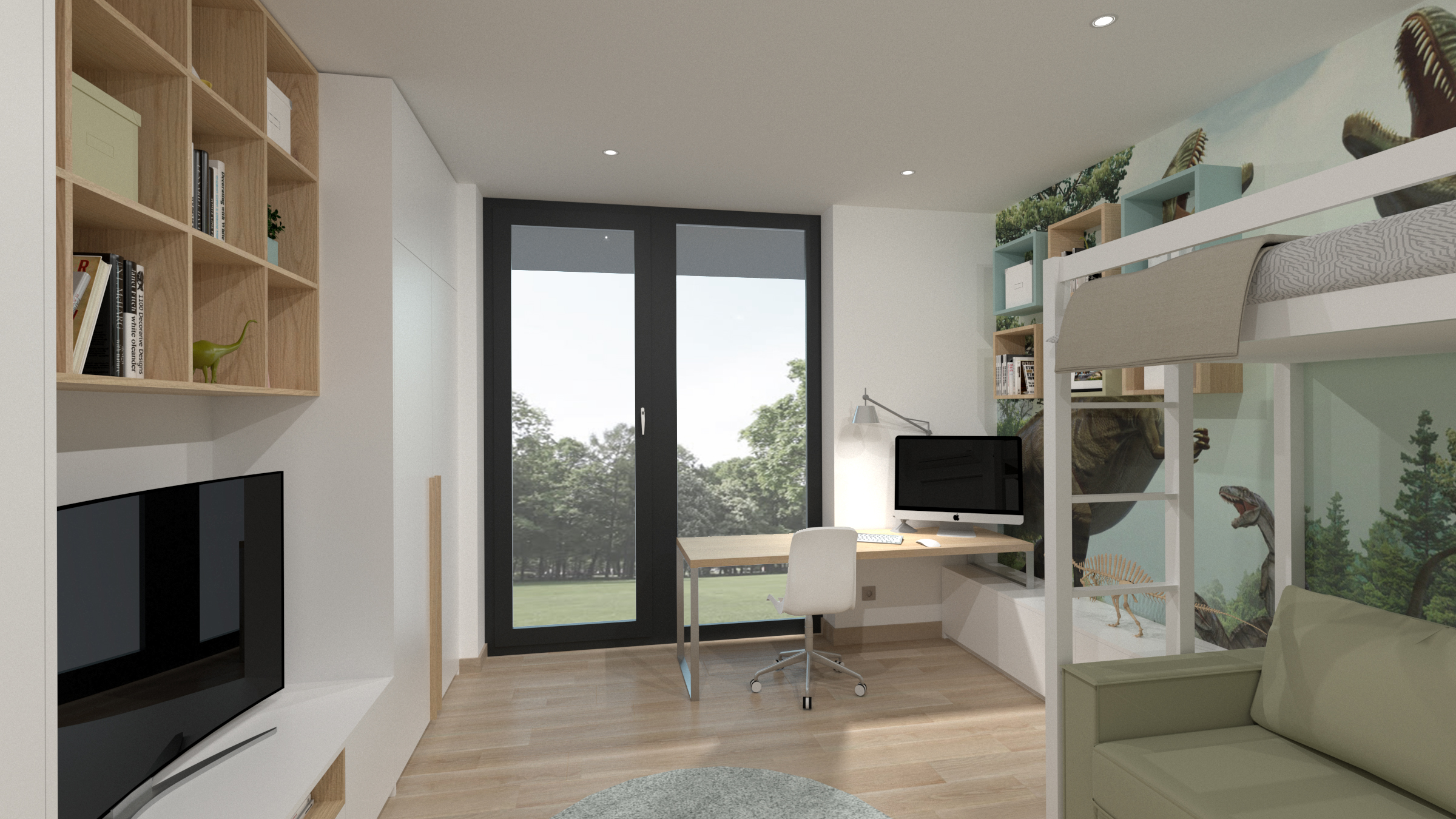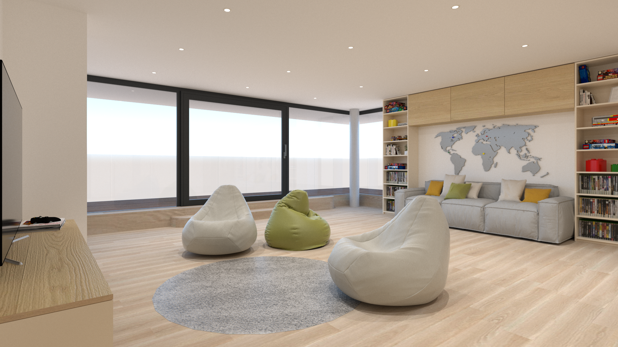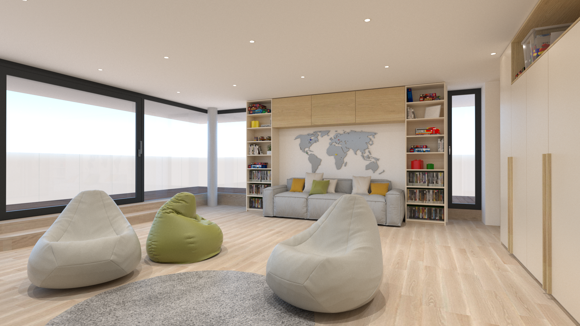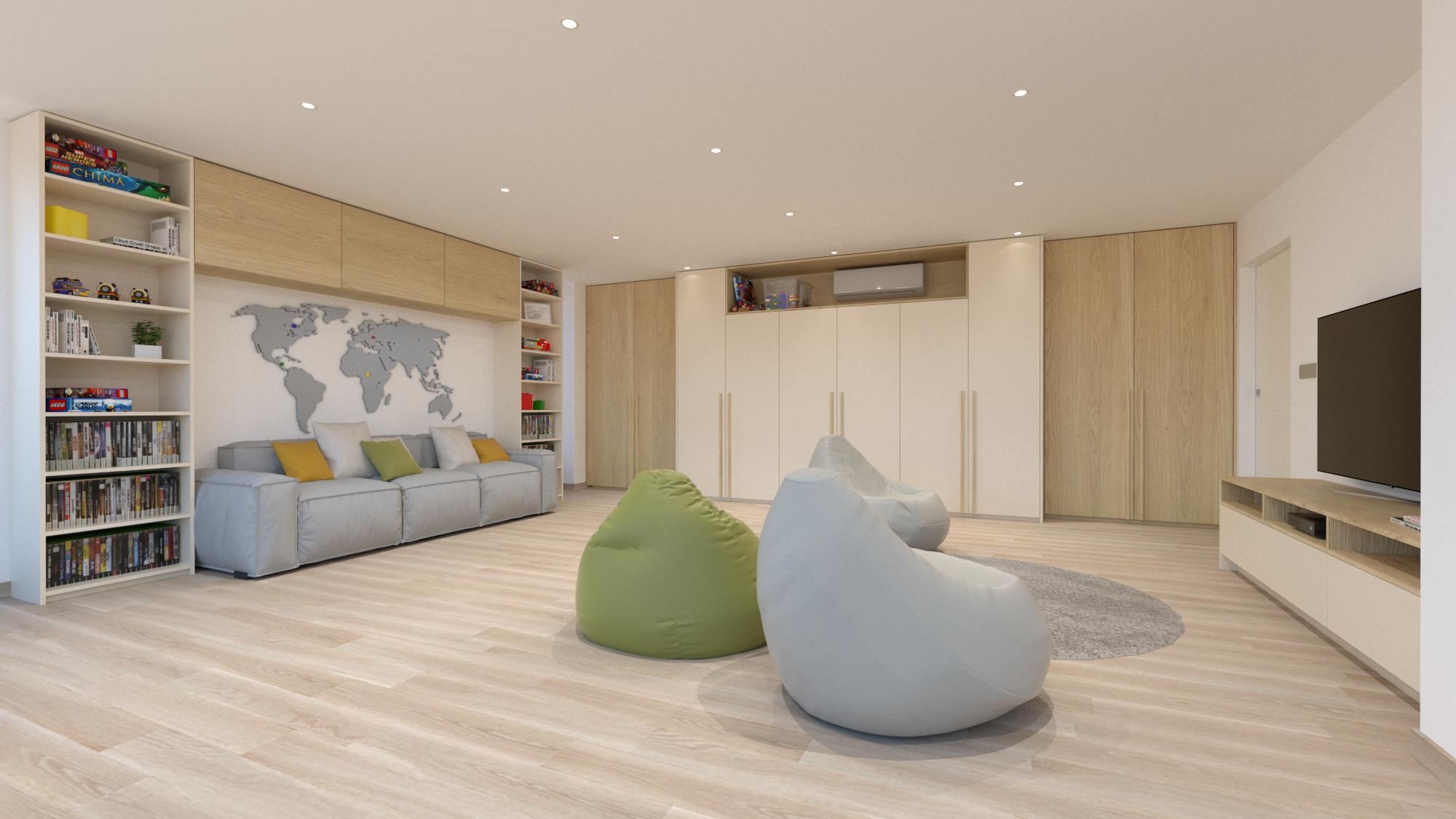 Súčasťou návrhu je aj detská izba, spálňa, herňa a vináreň – každá z miestností nadväzuje na celkový štýl a atmosféru interiéru.
