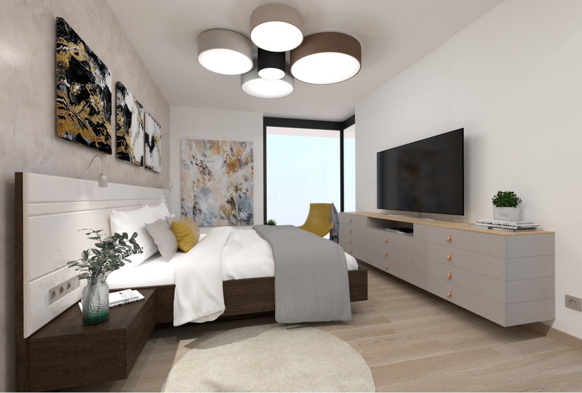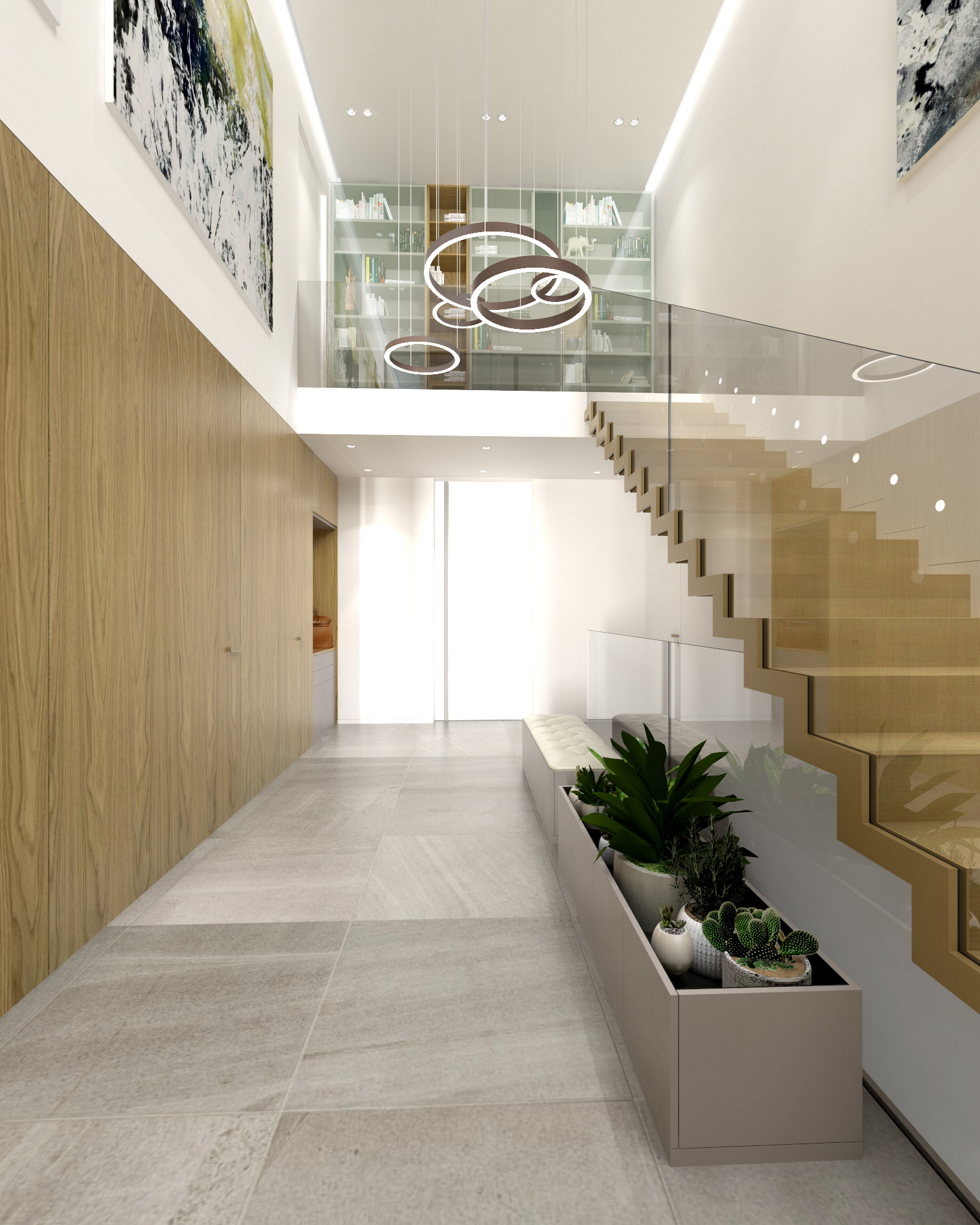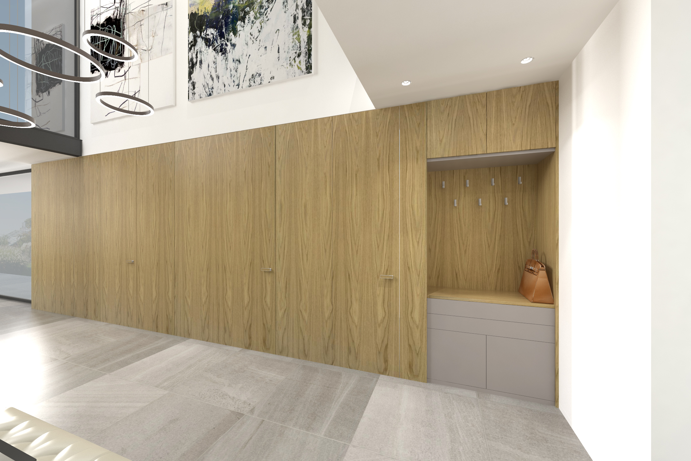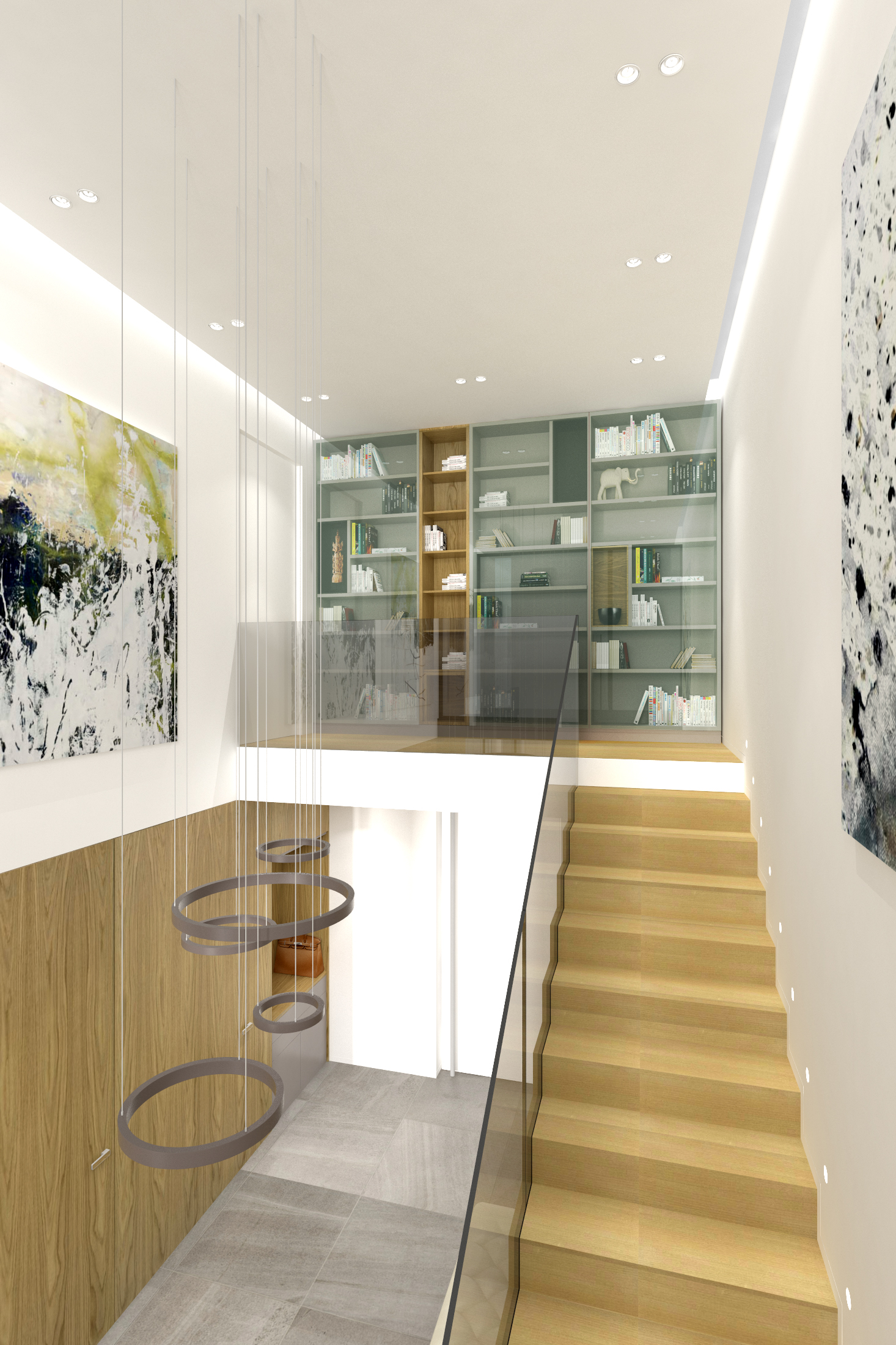 Interiér zjednocujú dvere SPACE v obklade, ktoré nadväzujú na dyhované prvky knižnice aj stien. Vzdušný a premyslený priestor ponúka komfort pre každodenný život aj chvíle oddychu.