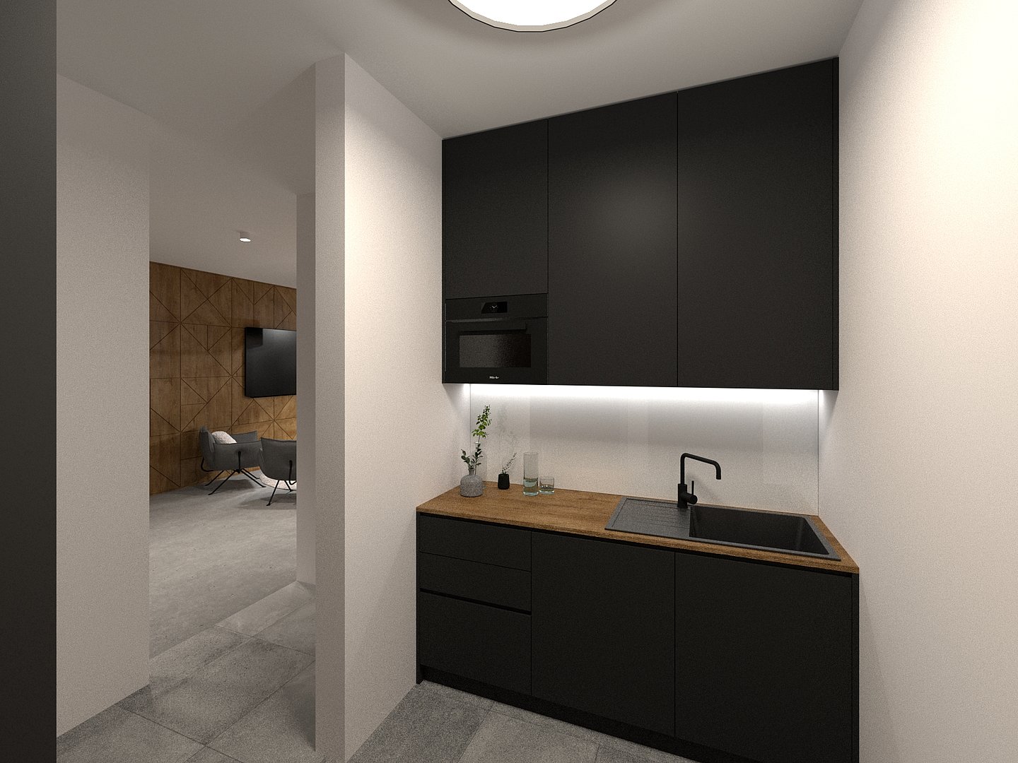 Rekonštrukcia kancelárskych priestorov v Bratislave kladie dôraz na príjemné pracovné prostredie, ktoré kombinuje funkčnosť s prirodzenou estetikou. Veškerý nábytok je navrhnutý v kombinácii dyhy dub rustikal old, laminátu titan a bielej farby – výsledkom je vyvážený interiér, ktorý pôsobí súčasne profesionálne aj útulne. Dominantný drevený dekor vnáša do priestoru teplo a prirodzenosť, zatiaľ čo titán a biela farba dopĺňajú celok o moderný a čistý výraz. Malá kuchynka v prevedení OPTIMA, tiež z laminátu titán, štýlovo nadväzuje na celkové ladenie a poskytuje zamestnancom plnohodnotné zázemie.